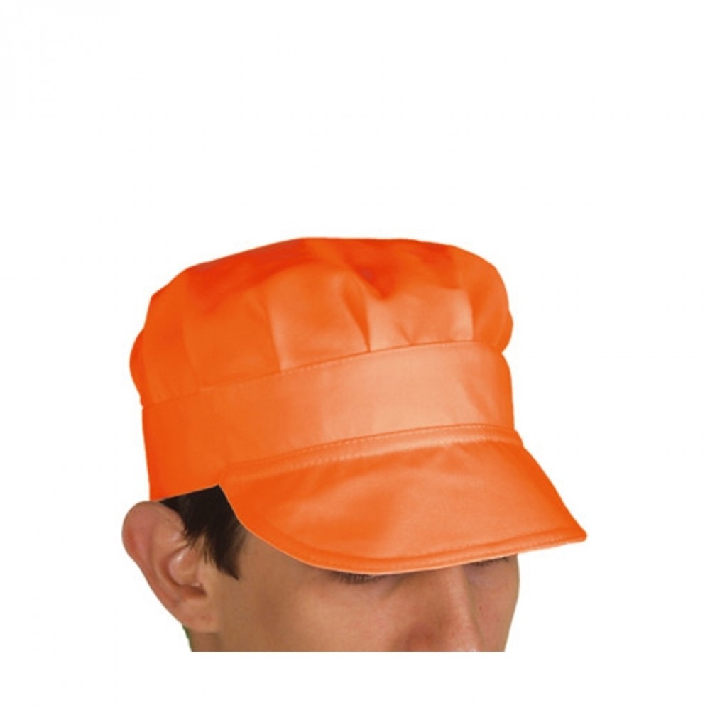 Berretto arancio con visiera corta, 100% poliestere, 190 gr, taglia unica, regolabile con velcro, unisex.