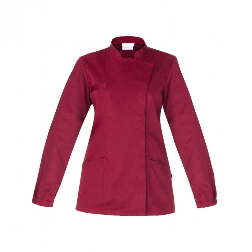 Casacca donna in tessuto Luxsatin, 50% cotone 50% poliestere, 180 gr, 3 tasche, bottoni a pressione, polsino con elastico, vestibilità slim fit, trattamento stiro facile.