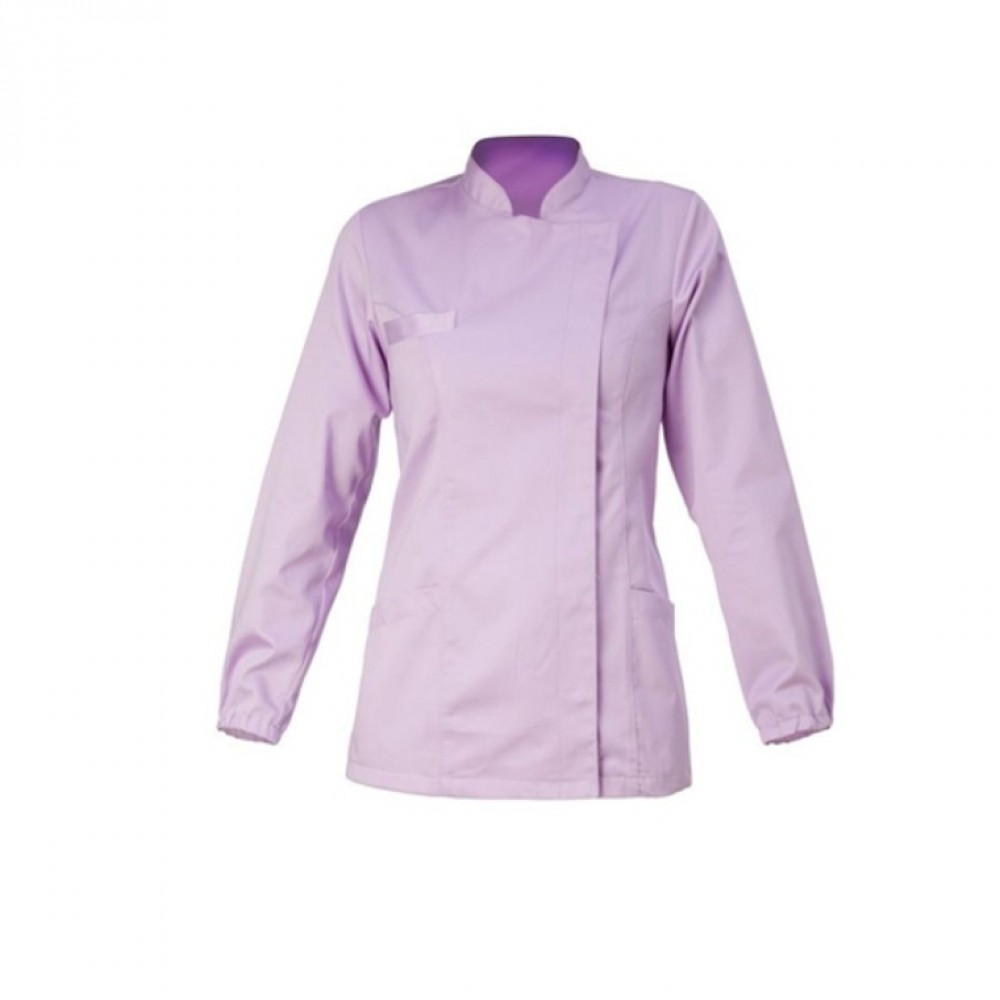 Casacca donna in tessuto Luxsatin 50% cotone 50% poliestere, 180 gr, 3 tasche, bottoni a pressione, polsino con elastico, vestibilità slim fit, trattamento stiro facile.