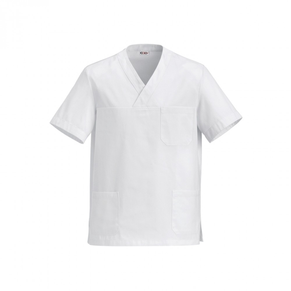 Casacca manica corta unisex 100% cotone, 190 gr, scollo a V, 3 tasche, vestibilità regolare, lavabile a 60°. Disponibile dalla taglia XS alla XXXL.