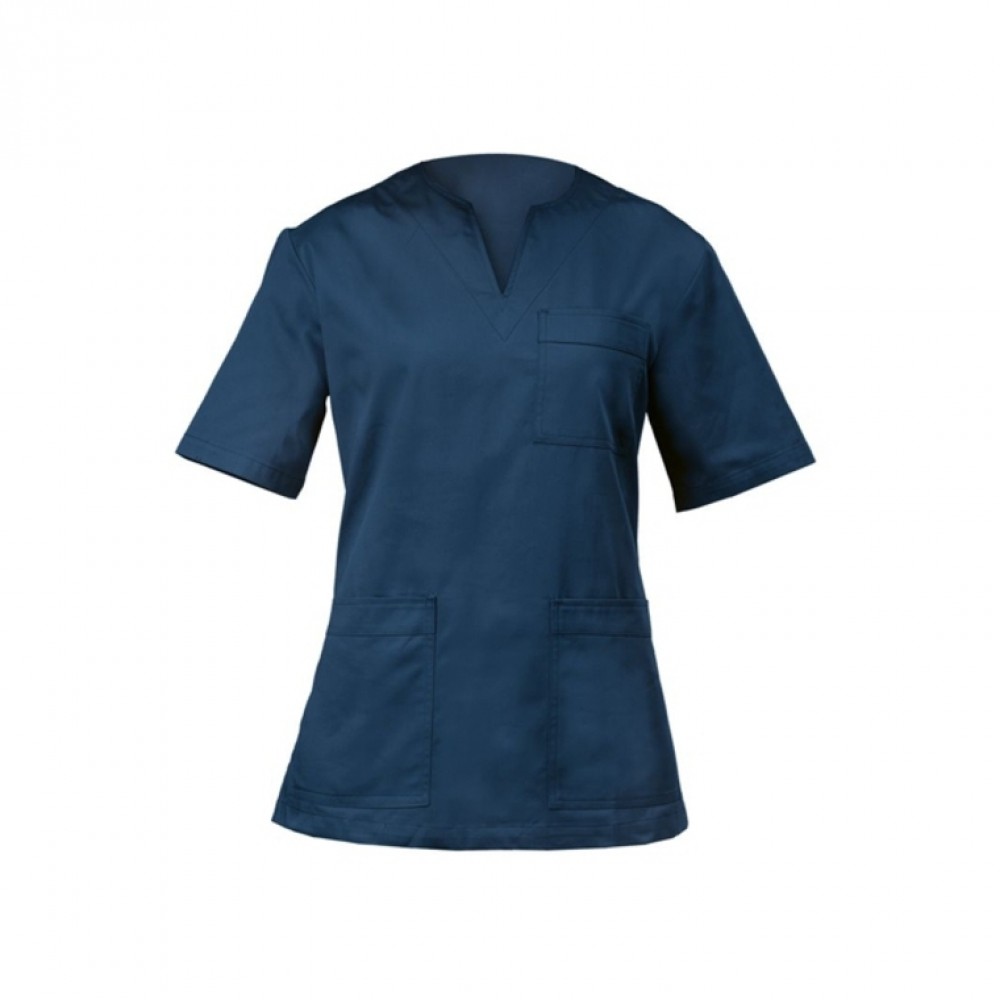 Casacca donna scollo a V in tessuto Luxsatin 50% cotone 50% poliestere, 180 gr, 3 tasche, vestibilità slim fit, trattamento stiro facile, lavabile a 60°.