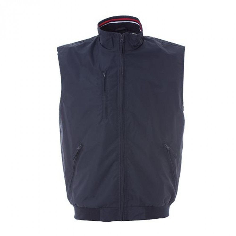 Gilet 100% polyamide, 100 gr, interno collo e fondo elasticizzati, 3 tasche con zip, tasca interna.