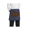 Grembiule vita con lacci, colore jeans con tasca marrone, 60% cotone 40% poliestere, misure 40 x 70 cm, tascone con cucitura centrale, lavabile a 60°.