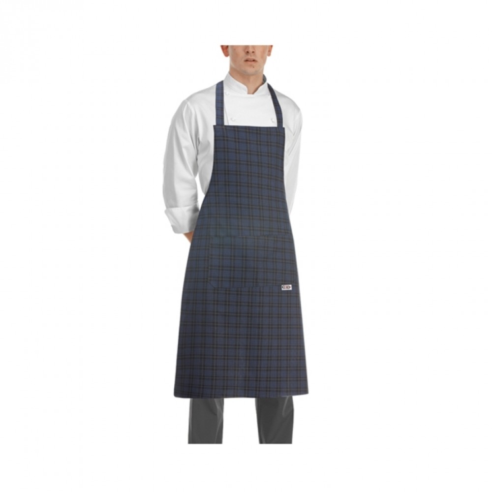 Grembiule con pettorina, 100% cotone, tascone centrale, misure 90 x 70 cm, lavabile a 60°.