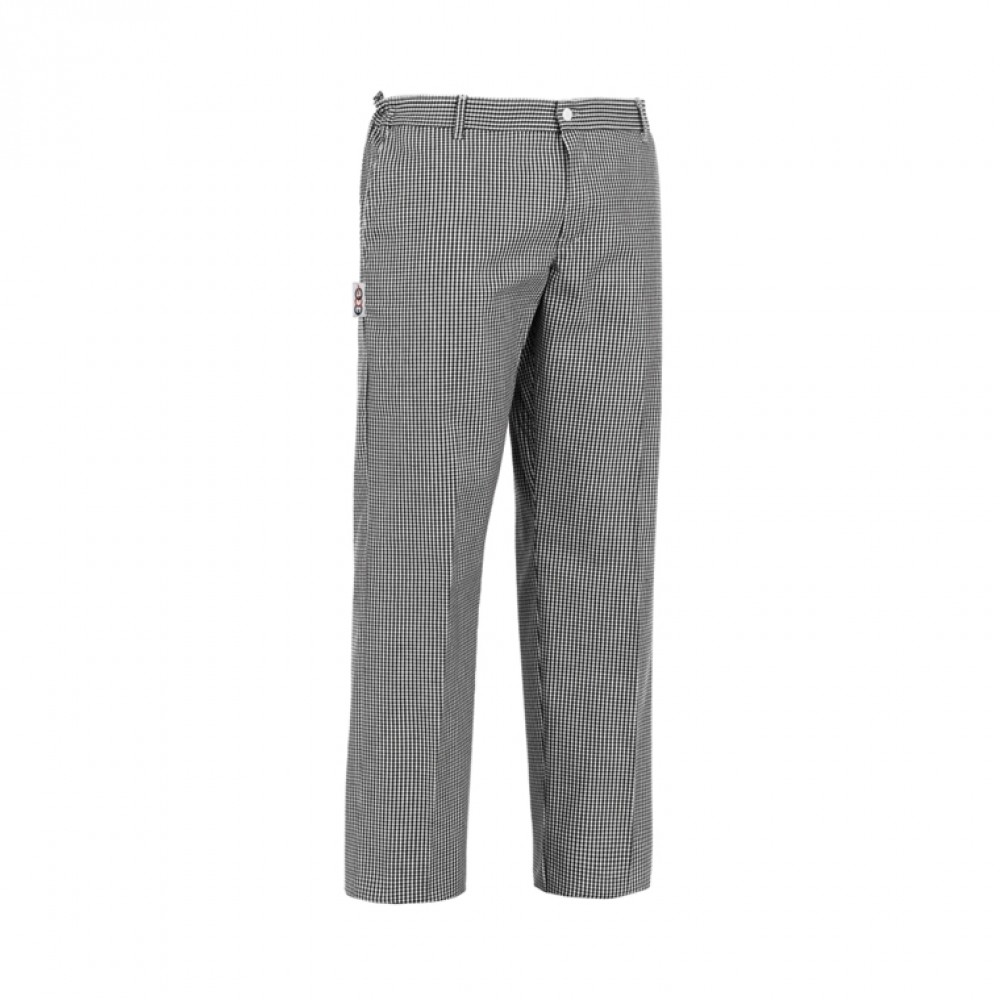 Pantalone da cucina quadretti bianchi neri, 65% poliestere 35% cotone, 150 gr, senza pinces, chiusura con zip e bottone, passanti in vita, tasche anteriori, taschino posteriore, lavabile a 60°.