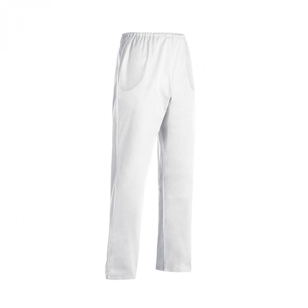 Pantalone unisex bianco 100% cotone, 190 gr, elastico in vita, 2 tasche interne ai fianchi, vestibilità regolare.